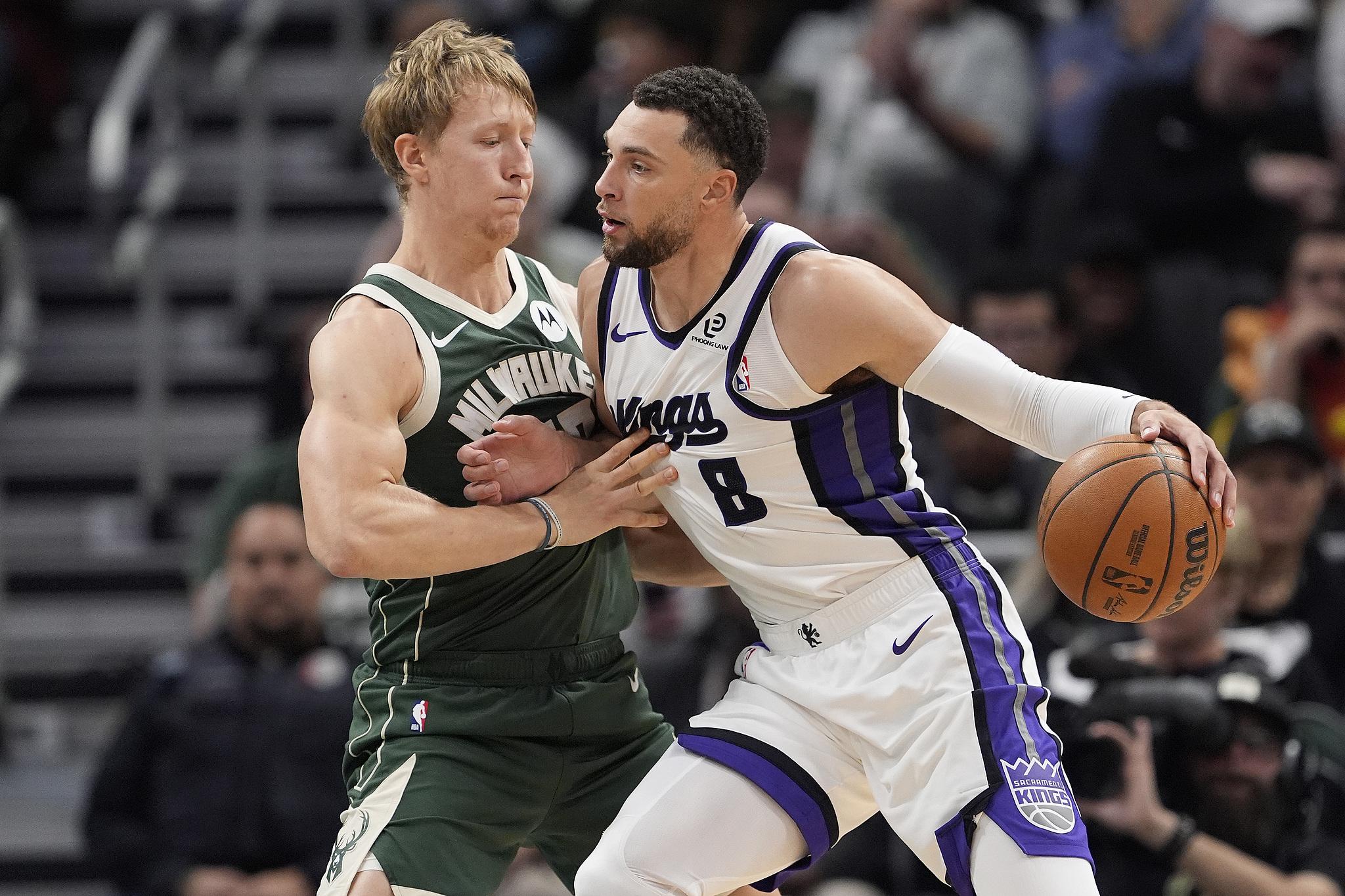 结果经过四节比赛的鏖战,国王队凭借关键时刻制造字母哥致命失误,拉文精准切掉字母哥绝平补篮以135-133拿下2分险胜。